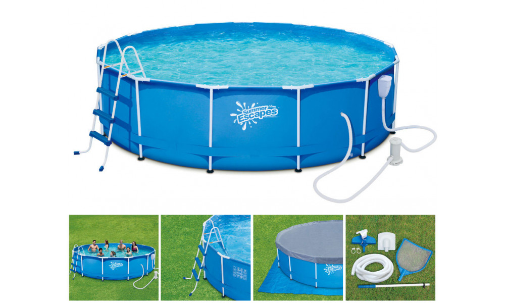 Практичный сборный каркасный бассейн SummerEscapes Р20-1452-B, обладает оригинальной конструкцией, которая позволяет собрать бассейн за 45 минут, без особых физических усилий. Фильтр-насос производительностью 3800л/ч, сменный картридж тип А/С, диаметр шлангов 38мм. Чаша бассейна изготовлена из высококачественного трехслойного ПВХ. Стойки каркаса металлические с покрытием. При сборке бассейна следуйте рекомендациям, указанным в инструкции. Бассейн поставляется полным набором, достаточным для использования, кроме средств для обеззараживания воды. Дополнительно вы можете приобрести аксессуары для каркасного бассейна SummerEscapes Р20-1452-B в разделе "Аксессуары для бассейнов".